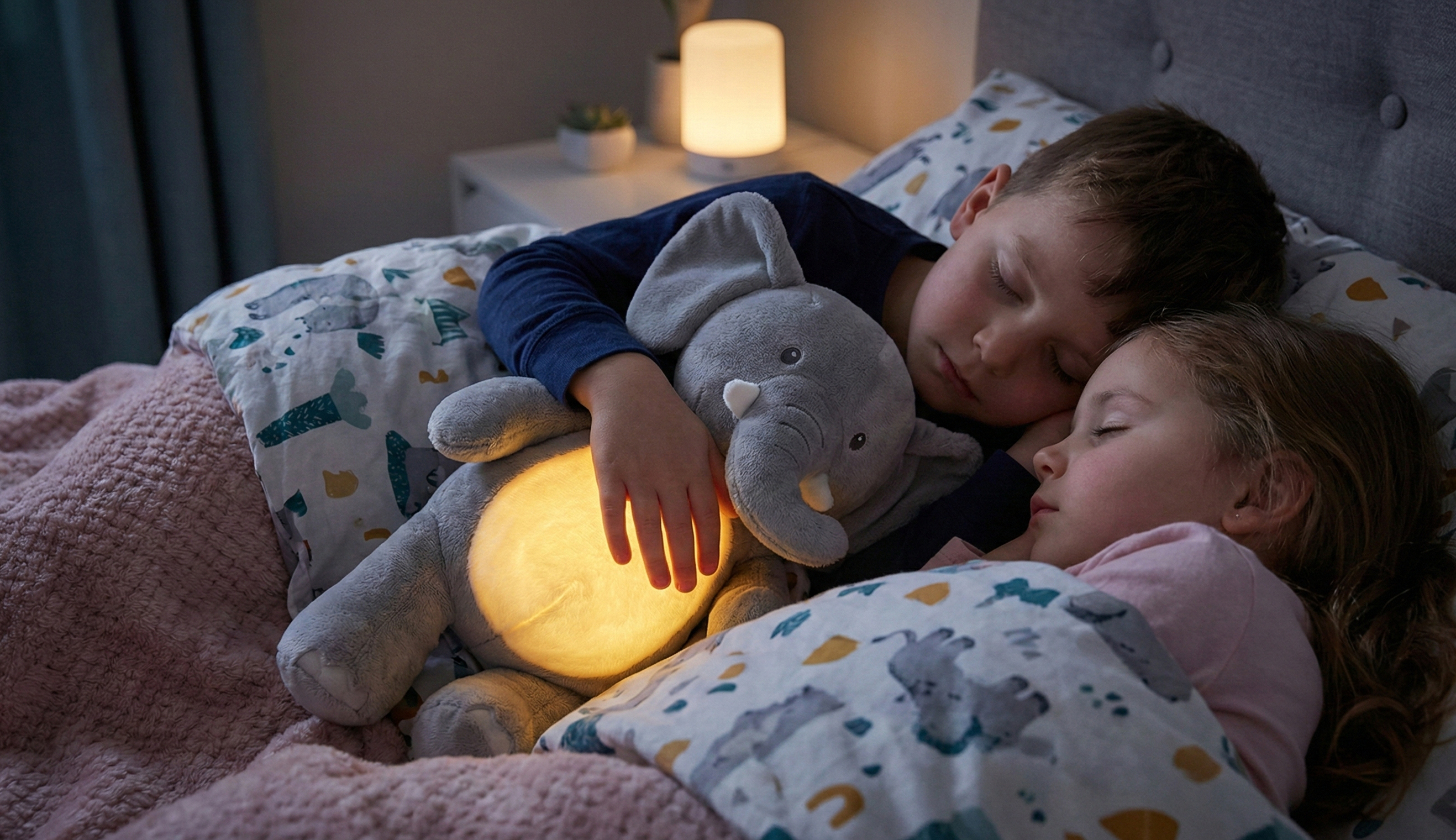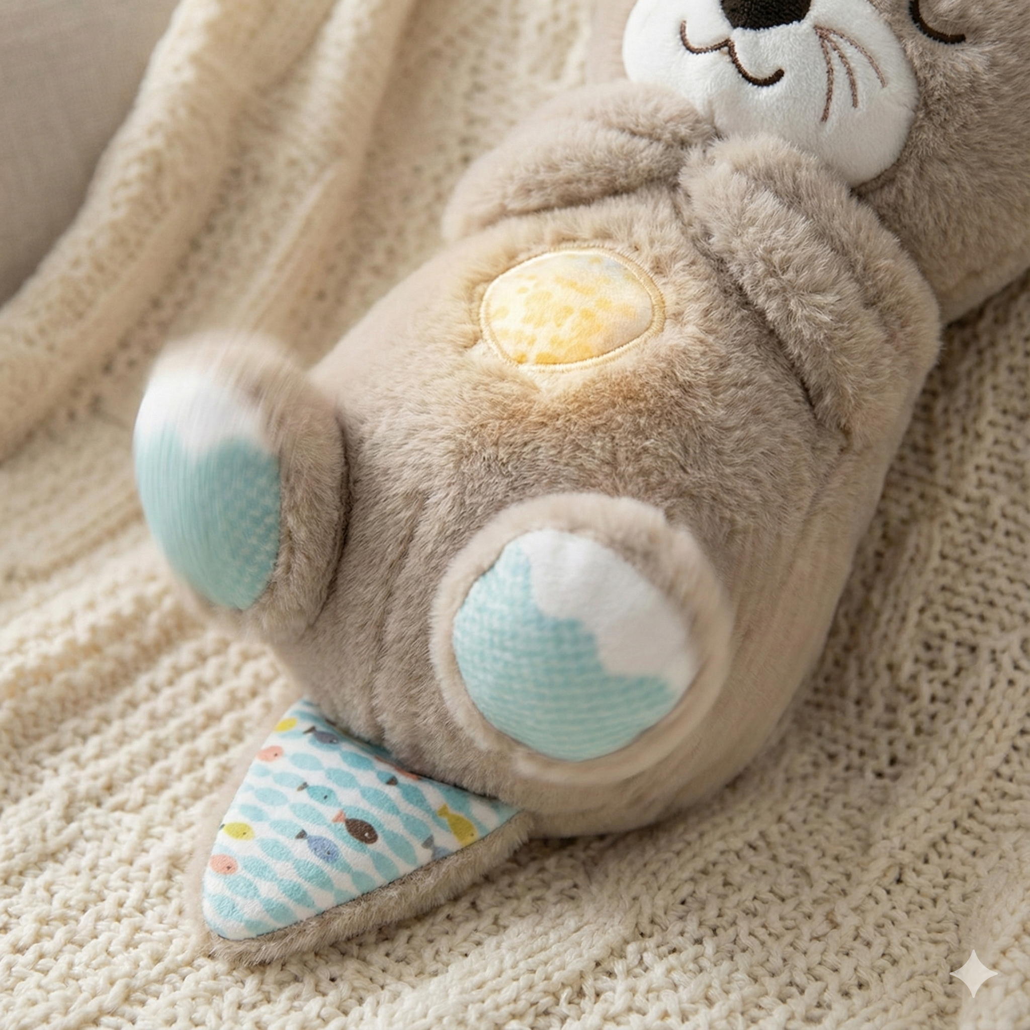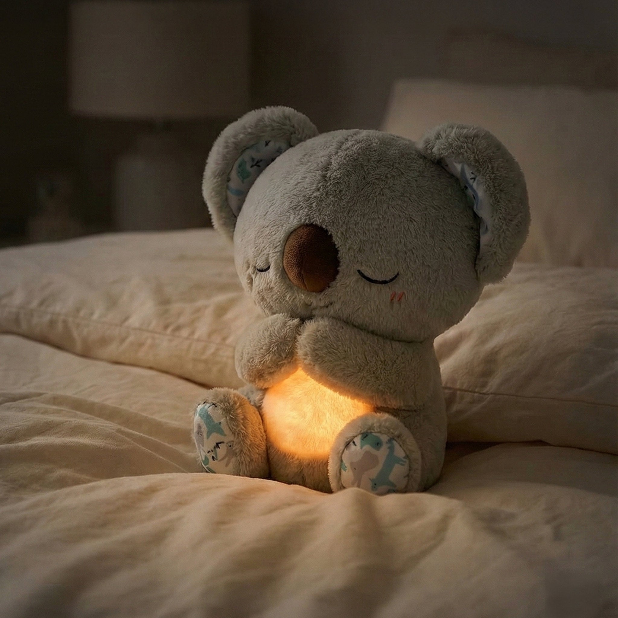 A soft, amber glow radiates from the tummy to chase away the darkness without disrupting melatonin.