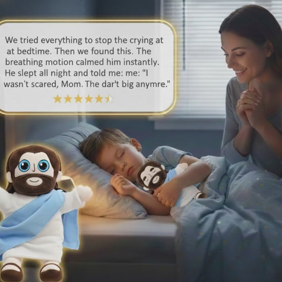 BlessedBestie Jesus Soothing Plush isn't just a toy, it's a bio-hack for your nervous system. By mimicking the rhythmic breathing of a loved one, helps your child fall asleep faster and stay asleep longer—no apps, no medication, just peace.
